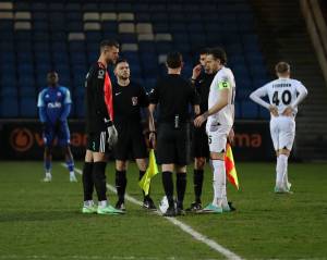 Town playing some nice stuff here, a nice move ends with Hmami who drags his shot inches wide of the post.